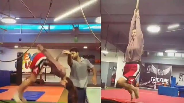 Actress and fitness enthusiast Disha Patani shared a video performing various jaw-dropping stunts, and rumoured beau Tiger Shroff seems impressed and envious. Disha posted a video pulling off stunts such as backflips, cartwheels, flips and swinging.