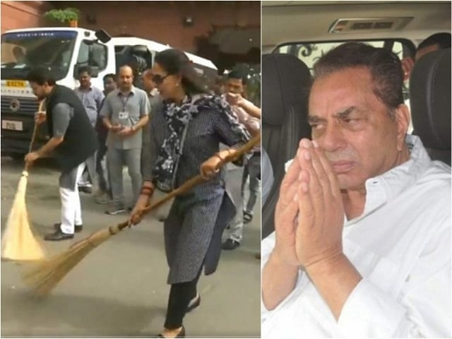 Veteran actor Dharmendra has apologized on social media after trolling his wife and BJP politician Hema Malini. Dharmendra was asked on Twitter whether his wife had used a broom before this, in the context of a recent cleanliness drive at Parliament where Hema was seen handling the broom in an awkward manner.