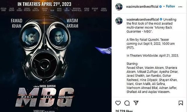 "Unveiling the first look of our next movie `Money Back Guarantee - MBG`," he captioned the post. The film is helmed by Faisal Qureshi. Fawad also informed that an official teaser of `MBG` will be out on September 9.
