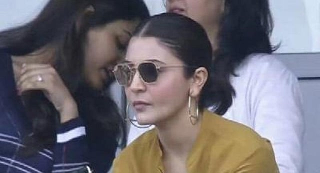 Anushka joined Virat during the gathering stage match between Sri Lanka and India at Headingley in Leeds, northern England on Saturday. She wore a mustard jumpsuit with her hair tied in a ponytail.