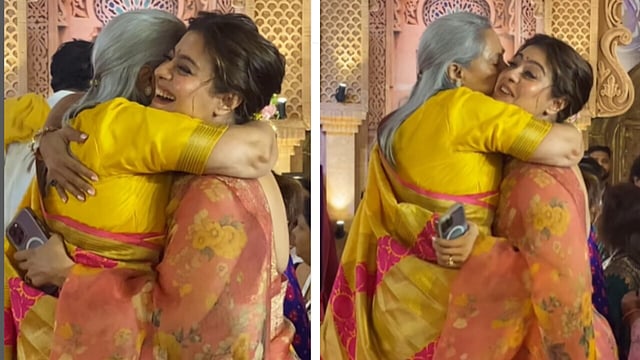 Actress-politician Jaya Bachchan was seen warmly embracing Kajol during the latter’s family’s annual Durga Puja celebrations in Mumbai on Saptami.
