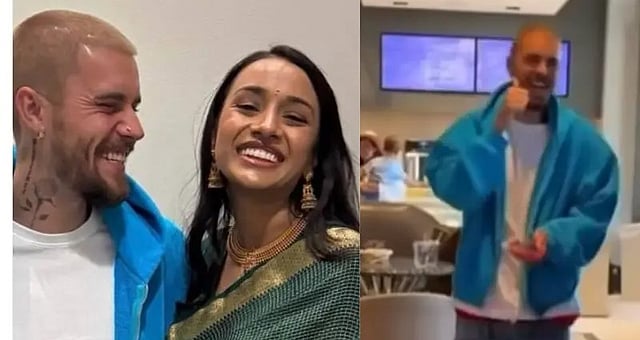 Along with the video, two photos showed the singer posing with the bride, who was dressed in traditional attire. She wore a beautiful dark green saree with golden embroidery, accessorised with gold jewellery and bangles. Another picture showed Bieber posing with other guests. The singer kept it casual in a white T-shirt, a blue jacket, and loose jeans.