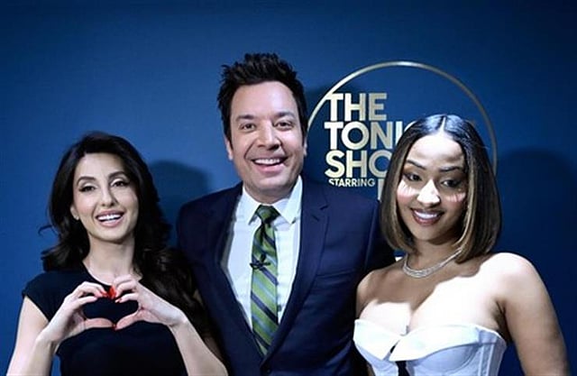 Bollywood actress-dancer Nora Fatehi has made her debut on “The Tonight Show” with a performance with Jamaican singer Shenseea and even posed for a picture with the host Jimmy Fallon.