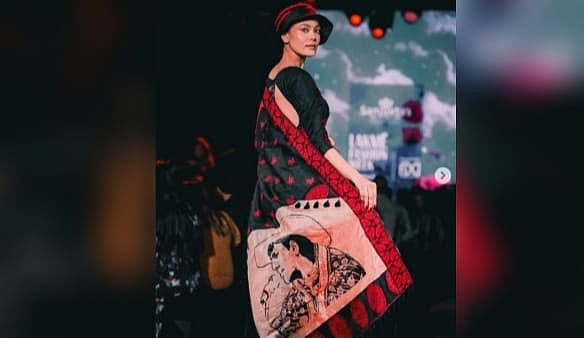 The show opened with a soulful tribute to the legendary Assamese icon Zubeen Garg, featuring an ethereal saree painted & handwoven with his portrait and immortal lyrics. The ensemble was both an homage and a statement that displayed a convergence of music, memory, and textile art that stirred the heart and honoured the cultural beat of Assam.In ‘Gadhuli,’ Sanjukta reinterpreted the mekhela chador, the quintessential Assamese attire, through a modern lens, pairing heritage weaves with bold, contemporary silhouettes. From sarees and elegant dhotis to structured skirts and graceful anarkalis, each piece resonated with intricate craftsmanship and emotional storytelling. The interplay of textures, motifs, and meticulous detailing captured the duality of twilight showcasing its strength and stillness, its mystery and grace.