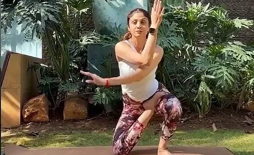 In the video clip, Shilpa was seen balancing perfectly on a yoga mat placed on a lawn, and demonstrated strength, flexibility and body control while performing Vatayansana.