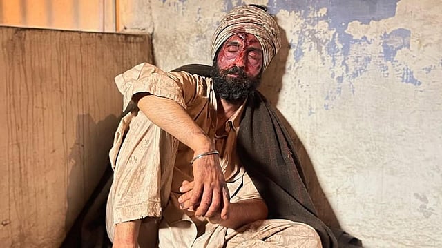 In the first image, Diljit Dosanjh can be seen sitting on the floor in a raw and rugged look, dressed in a simple kurta and turban. His bloodied and bruised face conveys a powerful sense of pain and resilience. The film is based on the life of human rights activist Jaswant Singh Khalra.