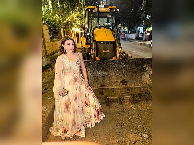 Bollywood actress Soha Ali Khan served up some pre-Diwali inspiration that perfectly blends humour with style as she posed next to a backhoe loader and said that “when life gives you potholes, make it your runway.”