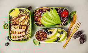 • Have rice, fresh vegetables, and salads for lunch. Opt for chicken, fish, or eggs.