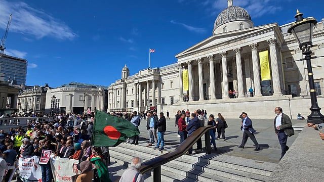 London: In a demonstration of unity and political expression, thousands of British-Bangladeshis and members of the Bangladeshi diaspora gathered at London’s iconic Trafalgar Square on Monday to participate in a large-scale “Rally for Bangladesh.”