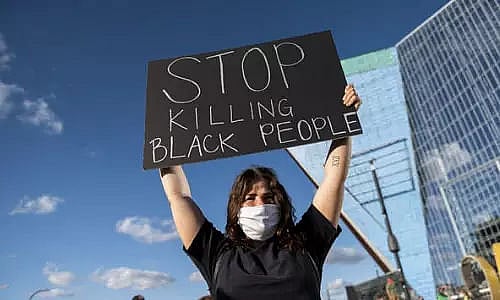 Over 100 people gathered in Manhattan's Union Square on Thursday afternoon to express their anger over what they called police brutality that led to George Floyd's death, reports Xinhua news agency. The 46-year-old African-American man died on Monday after a white police officer pinned him to the ground with a knee to the back of his neck while he was handcuffed and other officers stood by. While being pinned down, Floyd repeatedly pleaded, "please, I can't breathe" and "don't kill me".