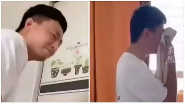 New Delhi: A viral video of a man who is also a father is going viral on a chinese social media platform Weibo, where, he can be seen crying following the poor performance of his child.