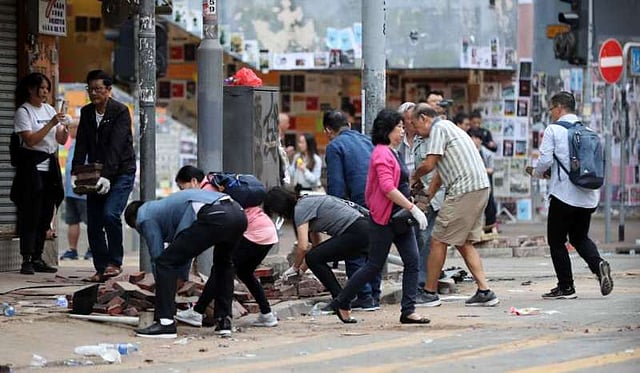 Hong Kong: A small group of protesters staged a defiant lunch-time rally in Hong Kong's business district on Thursday, a day after police stopped a largely peaceful march which ended in street clashes and vandalism. Around 200 people gathered at the Statue Square in Central, in response to online calls to “finish the rally together”, which was cut short on Wednesday, reports the South China Morning Post newspaper. Many dressed in office clothes, with some wearing face masks, yelled slogans as they defied what they saw as a violation of their right to assemble.