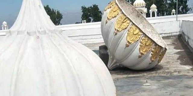 Islamabad: The nature’s fury has exposed the Pakistan government’s sham at the Gurdwara Darbar Sahib in Kartarpur when thunderstorms smashed some of its newly renovated domes.