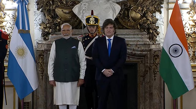 Later, Prime Minister Modi was warmly received by Argentina’s President Javier Milei at the historic Casa Rosada as the two leaders began bilateral engagements. PM Modi arrived in Argentina early Saturday on the third leg of his five-nation tour, following visits to Ghana and Trinidad and Tobago (T&T), earlier in the week. It will be followed by Brazil (July 5-8) and Namibia (July 9).