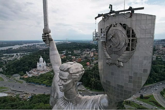 The Soviet emblem on the monument — the tallest staue in Ukraine — will be replaced by the trident by August 24, when the country celebrates Independence Day, Xinhua news agency quoted the Ministry of Culture and Information Policy as saying in a statement. Experts on Monday carrued out some preparatory work and constructed the metal sculpture of the trident, the Ministry said.