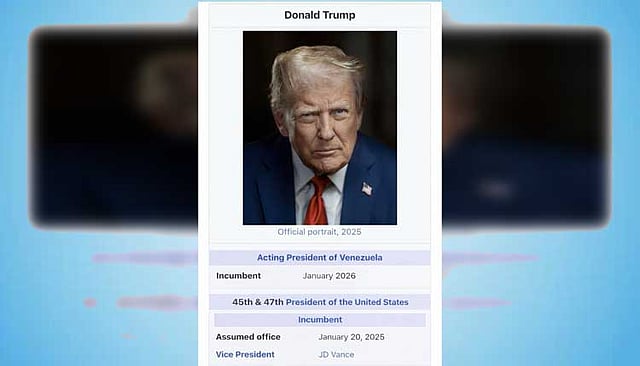 The photo seemed to be of an edited Wikipedia page, where Trump is shown as the ‘incumbent Venezuelan president’ as of January 2026. It also mentions his actual official posts — the 45th and 47th President of the United States.