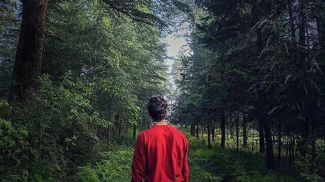 He pushed it open and stepped inside. A green forest glimmering in the dark. The trees were unlike anything he had seen before. So tall that it seemed to touch the bosom of the sky. The trunks, smooth and round of varied thickness. Branches grew out of them like an explosion of ecstatic fireworks. The ground shimmered in a stillness with patches of intertwined roots erupting from the soil. The trees may stand apart but are unified by their roots.
