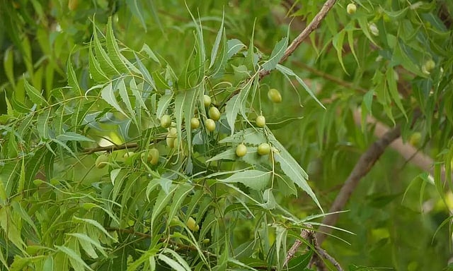 The neem leaves are very good for the skin. Dried neem leaf powder has a lot of medicinal properties. Neem leaves purify the air. According to astrology, the neem tree is associated with Shani (Saturn) and Ketu. So the neem tree should be planted in the house to get relief from these two malefic planets. Taking a bath with neem leaves can reduce bad effects of Ketu. Similarly, performing havan (Fire worship) with neem wood can remove ill effects of Shani.
