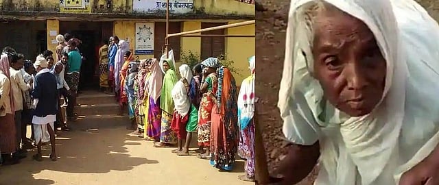 Raipur: A 100-year-old woman namely 'Viswas' was seen casting her vote at a polling station in Dornapal district during the first phase of the Chhattisgarh Assembly elections on Monday.