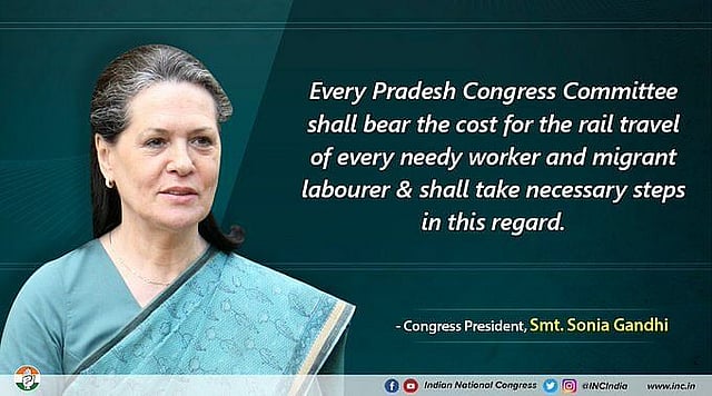Guwahati: Congress will bear cost of rail travel for migrants and needy workers, said Congress supremo Sonia Gandhi. She also questioned government spending worth crores on events.