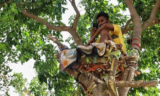 Due to the lack of an isolation centre in his village, Shiva came up with the idea of isolating on the tree. He has spent 11 days on the tree so far.