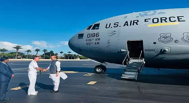 On his arrival from Washington DC, Singh was received by Commander, US INDOPACOM Admiral John Aquilino.