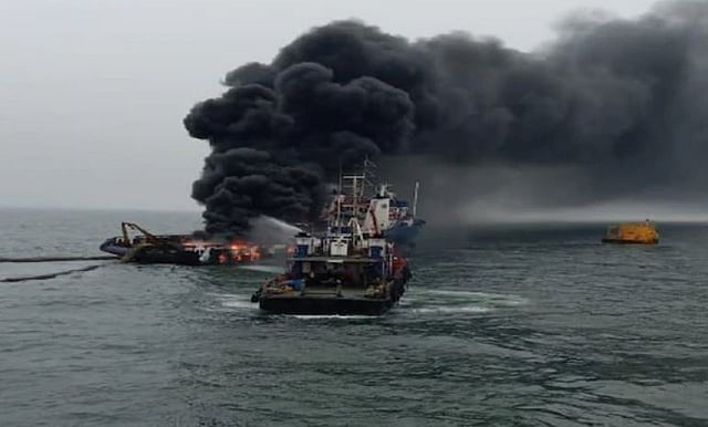 One crew member of Coast Guard was missing while 28 were rescued after a major fire broke out on an offshore support vessel off Visakhapatnam coast on Monday. According to a spokesperson of Eastern Naval Command, crew of offshore support vessel Coastal Jaguar had to abandon their vessel and jump into water to save themselves from fire which engulfed the vessel. "There was reportedly a loud explosion onboard Coastal Jaguar that was followed by thick smoke emanating from the vessel," he said. ICGS Rani Rashmoni which was in area was diverted to coordinate the rescue operation. Rani Rashmoni in coordination with Visakhapatnam Port Trust (VPT) boats rescued the distressed crew. (IANS)