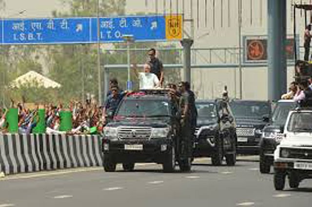 New Delhi, May 27: Prime Minister Narendra Modi travelled in an open jeep on the Delhi-Meerut Expressway after inaugurating its first phase here on Sunday. The first phase of the Delhi-Meerut Expressway cost Rs 842 crore on building the 9-km stretch of the 14-lane highway. The total cost of the project on completion would be Rs 7,500 crore. Once the entire project is complete, it will take 60 minutes to travel from Delhi to Meerut.