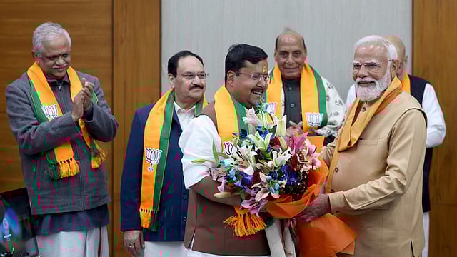 The new BJP president was accompanied by Prime Minister Narendra Modi and Home Minister Amit Shah to his office. Other senior leaders who flanked him included Union Ministers Rajnath Singh, Nitin Gadkari and outgoing party president Jagat Prasad Nadda.