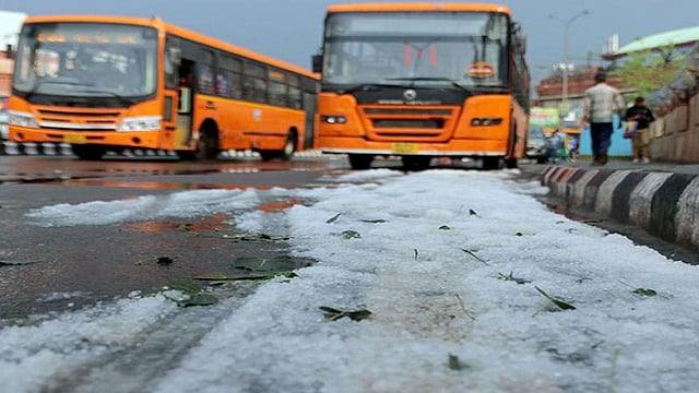 The national capital region on Saturday witnessed heavy hailstorm and rains, with the weather office predicting light rains in the evening. The sky turned dark in the afternoon with the wind speed reaching 30-40 kmph in the national capital, the IMD said. There will be light rains in the evening as well, the IMD added. With the sudden heavy rains, several parts of the city were waterlogged, affecting the flow of traffic. “Traffic is affected at Mahadev Chowk, Bawana, the carriageway from Azadpur Flyover towards Fruit Mandi due to waterlogging near Panchwathi Colony, Anand Parbat, Boulevard Road, Kashmiri Gate, Rohtak Road at Punjabi Bagh, Shyama Prasad Mukherjee Marg and Chhata Rail due to waterlogging,” the Delhi traffic police said. According to the Skymet, the Western Disturbance prevailing in north India has brought rain, hail, and thunderstorm. (IANS)
