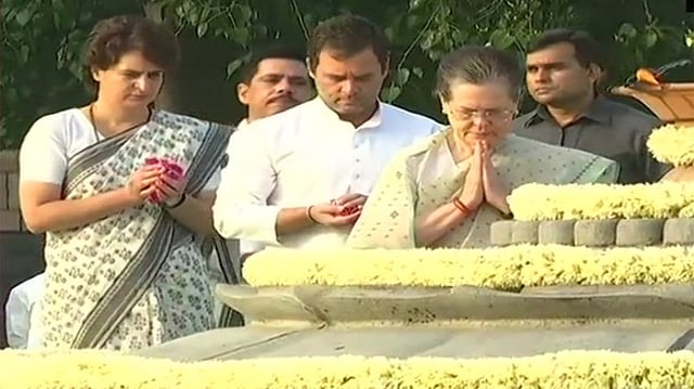 Chairperson of United Progressive Alliance (UPA) Sonia Gandhi, Congress President Rahul Gandhi and party general secretary for east Uttar Pradesh Priyanka Gandhi paid floral tribute to late Prime Minister Rajiv Gandhi on his death anniversary at Veer Bhumi on Tuesday morning. During the tribute ceremony, Priyanka Gandhi’s husband Robert Vadra was also present with the Gandhi family to paid homage to his father-in-law.