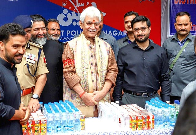 Lt Governor (L-G) Manoj Sinha served drinking water and refreshments to mourners when he saw off the 10th Muharram procession at Bota Kadal area of Srinagar. Hundreds of Shia mourners welcomed the Lt Governor as he joined the procession.