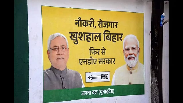 JDU MLC and spokesperson Neeraj Kumar, responding to the speculation, said, “The posters reflect Nitish Kumar’s vision for a developed Bihar — whether it’s women’s safety, employment, or industrialisation. This is about the strength of the NDA, the support of the Centre, and Nitish Kumar’s unwavering commitment to Bihar’s progress.”