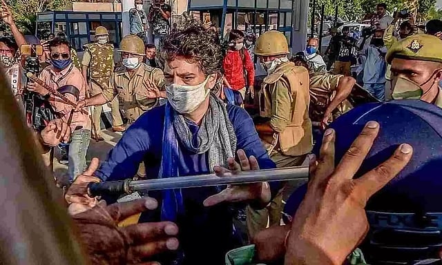 NEW DELHI: Dramatic scenes erupted at the Delhi-Noida-Direct (DND) flyway after the police resorted to mild lathi charge over hundreds of Congress workers, compelling party general secretary Priyanka Gandhi Vadra to come out and shield a party worker who was being baton charged by police personnel.