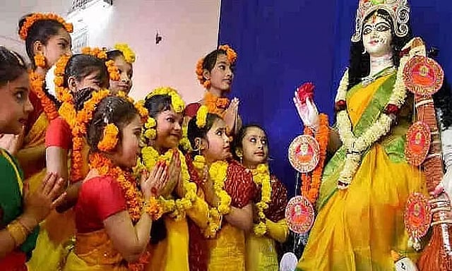 On this day, the deity 'Maa Saraswati' is being worshipped which a lot of devotion especially by the students and youths as Maa Saraswati is believed to be the idol of Knowledge, art, music, and culture. Sarawati itself means the Goddess of Knowledge and wisdom. She was believed to be born on this day and is also said to be 'Mahavidya'; the giver of all forms of knowledge. People usually perform Saraswati Puja during Purvahna Kala, which is the time between sunrise and midday.