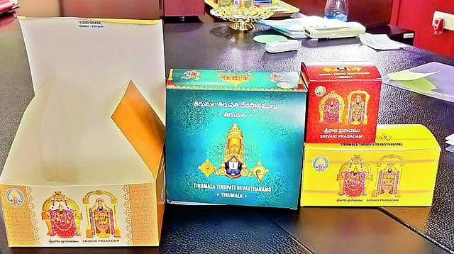 The temple management took the decision of using food grade paper boxes for providing the laddus only after mulling various options, like using biodegradable plastic covers and cloth/jute bags. Finally, they settled in paper boxes like those of the sweet shops and bakeries.