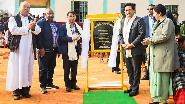 Shillong: Chief Minister Conrad K. Sangma laid the foundation stone for the Umpdem RCLP School in the Eastern West Khasi Hills District. On his visit, Sangma expressed his happiness and pride at being the first Chief Minister to visit the village.
