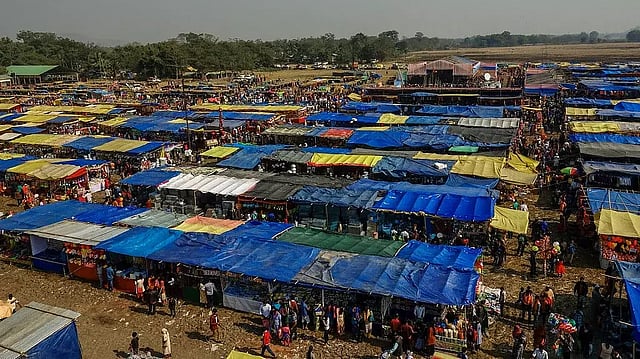 The three-day annual fair, held under the aegis of the king of Tiwas, Deep Sing Deo Raja, began on Thursday with him joining the Tiwas at a community feast. The Tiwas who came from the hills meanwhile have built small, makeshift bamboo huts with thatch spread on the floor.