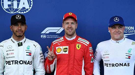 Vettel is to be joined in the front row by Briton Lewis Hamilton of Mercedes, the defending champion.