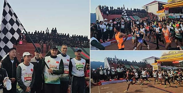 The marathon was flagged off early in the morning, with the 42 km full marathon starting at 5:30 am, jointly flagged by local MLA Tawang Namgey Tsering and Corps Commander of Gajraj Corps Lt Gen Gambhir Singh.