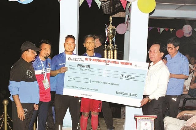 Kamlung Mossang, Minister for Urban Development and Consumer Affairs of Arunachal Pradesh who attended the episode as the chief guest, handed over the prizes to the United Miao Football Club winner and the runners up team.