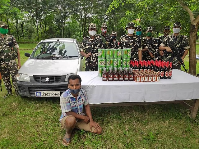 TANGLA/UDALGURI: The troops of 23 battalion of Sashastra Seema Bal (SSB) stationed at Lalpool in Udalguri district on Friday intercepted an Alto car (AS12F5740) at Angrajuli in Udalguri district and recovered a consignment of 144 bottles of foreign liquor, including beer cans and whiskey bottles. One Suman Narzary, an inhabitant of Angrajuli area of Udalguri, was apprehended.