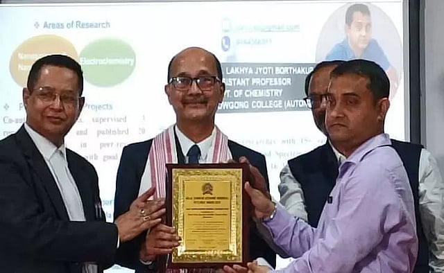 NAGAON: At a function, organized at the college auditorium of historic Nowgong College (autonomous), Dulal Chandra Goswami Memorial Trust on Friday ceremonially presented the prestigious ‘Dulal Chandra Goswami Memorial Research Award’ to assistant professor, Department of Chemistry, Nowgong College, Lakshya Jyoti Borthakur and assistant professor, Department of Economics, Nowgong College, Dr Tiken Das.