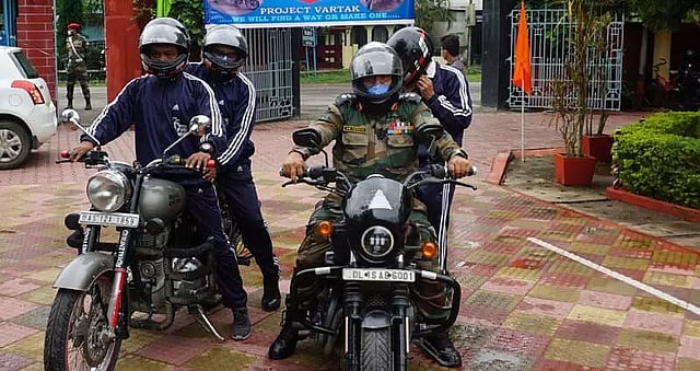 On Friday, the motorcycle expedition was flagged-in at Headquarters Chief Engineer Project Vartak and Col Anil Kothiyal paid homage to the martyrs by lying wreath at GREF Memorial, HQ Vartak and prayers were offered in Sarva Dharma Sthal along with very limited officers and staff.