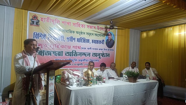On this occasion, an open session was held. Kuladhar Borah, President, Hatighuli Xakha Xahitya Xabha, chaired it. Speaking as the chief guest in the event, Dr Anil Saikia, retired Principal of Moran College and eminent folk culture researcher, said that Muhi Kanta Nath, who received his postgraduate degree in 1974, could have easily taught in any college at that time but chose an underdeveloped area like Hatighuli. Dr Saikia said that such persons were very rare and that he deserved gratitude.