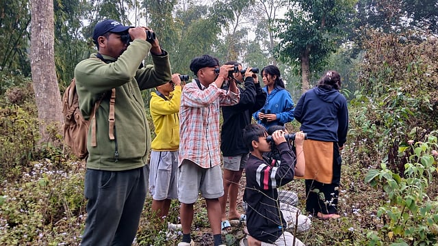 The weekly walks, guided by Bhaskor Barukial and supported by Rangsina Phangcho, aim to build ecological understanding and groom the next generation of community-based birdwatchers and conservation stewards.