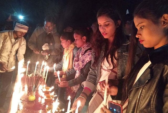 The student activists led by AASAA president Stephen Lakra lit earthen lamps and candles on the streets of Tangla town. Addressing the gathering, Lakra said, “Both the then Congress government and present BJP government have betrayed the Adivasi community by denying them ST status in Assam, though they are recognized as ST in other States.” AASAA activists and supporters staged a demonstration demanding ST status and wage hike for tea labourers.