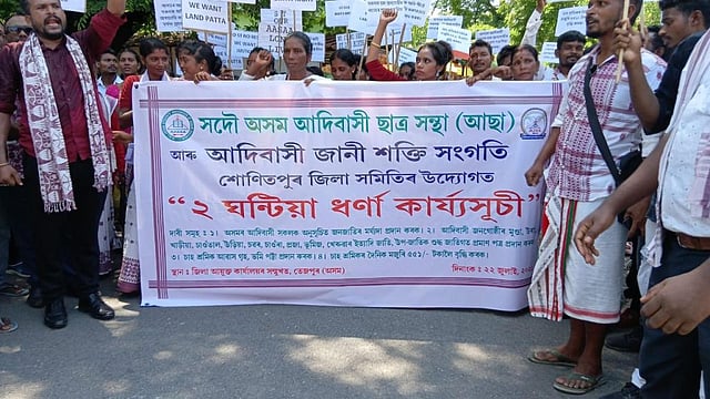 TEZPUR: The Sonitpur district committee of the All Adivasi Students’ Association of Assam (AASAA) staged a two-hour dharna at Court Chariali, Tezpur on Tuesday, pressing the government to address long-standing demands of the Adivasi community.