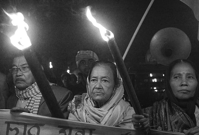 DEMOW: The All Assam Students’ Union (AASU) along with 30 indigenous organizations took out a massive torchlight rally in Demow on Saturday evening in protest against the Citizenship (Amendment) Act. The torchlight rally started from Demow Public Playground and passed through the main thoroughfares of the town. In the massive torchlight rally, AASU activists along with activists of other organizations shouted various slogans against the BJP Government, State Chief Minister, and State Finance Minister.