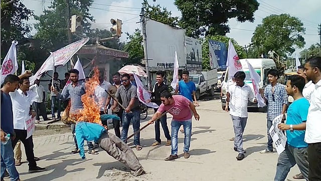 The AASU Demow Regional Committee activists shouted various slogans against the Union Petroleum Minister and the BJP government. In the protest, AASU leaders like Aditya Sarma of AASU Sivasagar District Committee, Dipankar Pratim Chetia and Sudipta Gogoi were present.